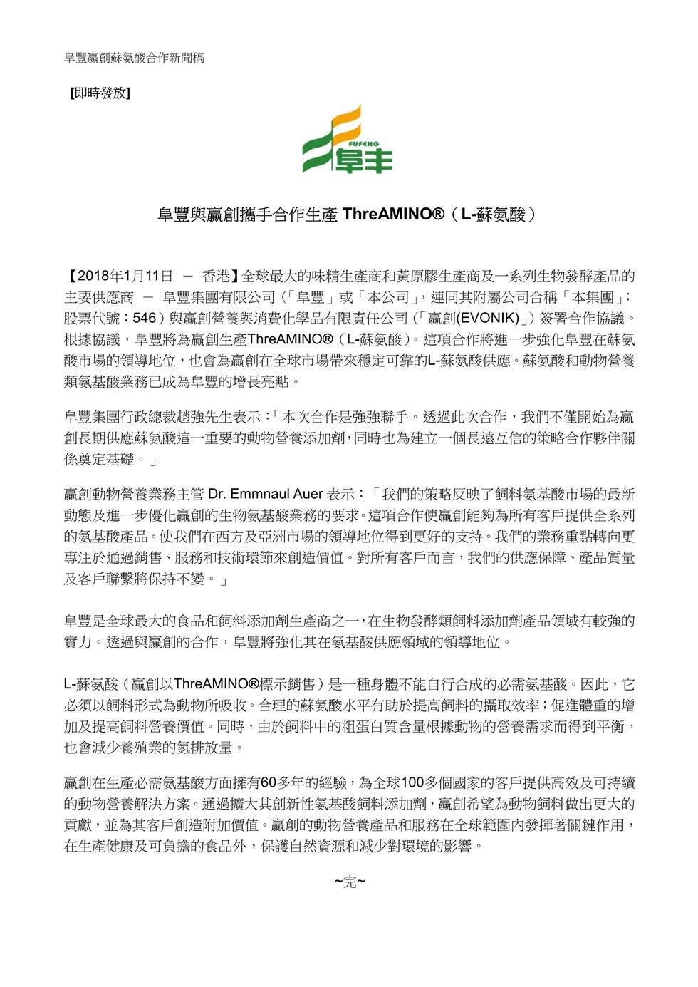 乐鱼网页版·网站页面-乐鱼(中国)与赢创携手合作生产ThreAMINO®(L-苏氨酸)