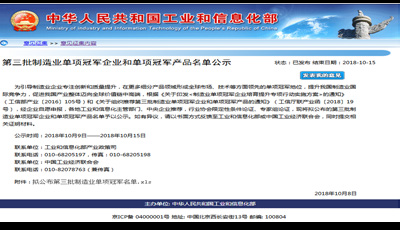 10 月8 日,工业和信息化部产业政策司公布了《关于第三批制造业单项冠军企业和单项冠军产品名单公示》,新疆乐鱼网页版·网站页面-乐鱼(中国)公司根据《关于印发< 制造业单项冠军企业培育提升专项行动实施方案> 的通知》(工信部产业〔2016〕105 号)和《关于组织推荐第三批制造业单项冠军企业和单项冠军产品的通知》(工信厅联产业函〔2018〕19 号)要求,组织材料申报了制造业单项冠军产品- 异亮氨酸,截至目前已顺利通过审核并公示,公示于10 月15 日结束。异亮氨酸单项冠军产品的成功授予, 将形成全球市场、技术等方面领先的单项冠军地位,提升新疆乐鱼网页版·网站页面-乐鱼(中国)公司的国际竞争力。